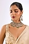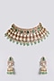 Featuring a gold finish choker necklace studded with kundan polki and soft green drops, set in mixed metal. It is paired with a matching of earrings. Perfect wear for festive occasions or wedding ceremony.