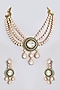Gold Finish Kundan Stone Green Enameled Long Layered Necklace Set