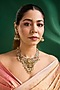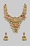 Featuring a gold finish necklace studded with multi-colored stones, set in mixed metal. It is paired with a matching pair of earrings. Perfect for festive occasions, weddings or cultural events, this jewellery is a wardrobe must for those who love to shine effortlessly.
