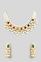 Featuring a gold finish choker necklace studded with multi-colored stones and pearl drops, set in mixed metal. It is paired with a matching pair of earrings. Ideal for festive occasions, weddings, or elevating your elegant evening look.