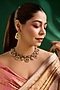 Featuring a gold finish choker necklace studded with pink and green kundan polki, set in mixed metal. It is paired with a matching pair of earrings. Perfect for festive occasions, weddings or cultural events, this jewellery is a wardrobe must for those who love to shine effortlessly.