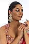 Featuring a pair of gold finish jhumka earrings studded with pink stones and pearls, set in mixed metal. Perfect for wedding celebrations, festive soirees or cultural gatherings adding a regal charm to every look.