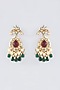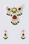 Gold Finish Red & Green Kundan Polki Necklace Set