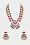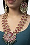Featuring a gold finish long necklace studded with red kundan polki, set in mixed metal. It is paired with a matching pair of earrings.