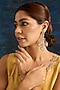 Featuring a pair of gold finish dangler earrings studded with rose quartz and pearls, set in mixed metal. Perfect for festive occasions, weddings or cultural events, this jewellery is a wardrobe must for those who love to shine effortlessly.