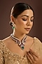 Featuring a gold finish choker necklace studded with ruby and emerald stones, set in mixed metal. It is paired with a matching pair of earrings. Add a touch of sparkle to your ensemble, perfect for weddings or festive celebrations.