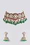 Gold Finish Ruby Red & Emerald Green Stone Choker Necklace Set