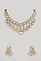 Featuring a gold finish choker necklace studded with white kundan polki and pearl drps, set in mixed metal. It is paired with a matching pair of earrings. Ideal for festive occasions, weddings, or elevating your elegant evening look.