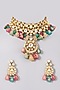Featuring a 22 Kt gold plated choker necklace studded with kundan polki and multi-colored stones, set in alloy. It is paired with a matching pair of earrings.