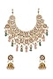 Featuring a 22 Kt gold plated necklace studded with kundan polki, set in alloy. It is paired with a matching pair of earrings.