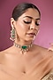 Featuring a 22 kt gold plated choker necklace studded with kundan polki, emerald green stone and beads, set in brass. It is paired with a matching pair of earrings. Perfect choice for festive celebrations or other Indian festivities.