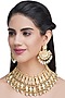 Featuring a 22 Kt gold plated necklace studded with kundan polki and pearls, set in alloy. It is paired with a matching pair of earrings.