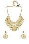 Featuring a 22 Kt gold plated necklace studded with kundan polki and pearls, set in alloy. It is paired with a matching pair of earrings.