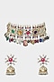 Featuring a 22 Kt gold plated necklace studded with navratan stones and pearls, set in alloy. It is paired with a matching pair of earrings.