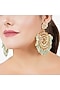 Featuring a pair of 22 Kt gold plated chandbali earrings studded with sea green onyx, kundan, and pearls, set in alloy.