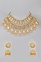 Featuring a 22 Kt gold plated necklace studded with kundan and white stones, set in alloy. It is paired a with matching pair of earrings.