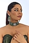 Featuring a green floral choker necklace studded with stones, set in velvet. It is paired with a matching pair of earrings. Perfect for wedding celebrations, festive soirees or cultural gatherings adding a regal charm to every look.