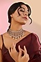 Featuring a rose gold finish necklace studded with american diamond, set in mixed metal. It is paired with a matching pair of earrings. Perfect wear for any festive occasion or wedding ceremony.