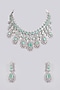 Featuring a silver finish necklace studded with crystals and blue stones, set in mixed metal. It is paired with a matching pair of earrings. Perfect for wedding celebrations, festive soirees or cultural gatherings adding a regal charm to every look.