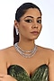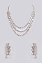 Featuring a silver finish layered choker necklace studded with crystals, set in mixed metal. It is paired with a matching pair of earrings. Perfect for wedding celebrations, festive soirees or cultural gatherings adding a regal charm to every look.