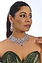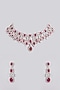 Featuring a silver finish necklace studded with crystals and red stones, set in mixed metal. It is paired with a matching pair of earrings. Perfect for wedding celebrations, festive soirees or cultural gatherings adding a regal charm to every look.