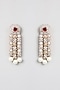 Silver Finish Red Stone & Pearl Drop Dangler Earrings