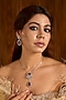 Featuring a silver finish pendant necklace studded with ruby and diamonds, set in mixed metal. It is paired with a matching pair of earrings. This necklace set is a testament to refined taste and timeless style, ideal for festive occasions or wedding ceremonies.