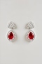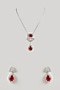 Silver Finish Ruby & Diamond Pendant Necklace Set