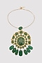 Gold Finish Kundan Polki & Green Enameled Pendant Necklace In Sterling Silver