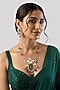 Gold Finish Kundan Polki & Oval Green Stone Pendant Necklace In Sterling Silver