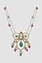 Featuring a gold finish pendant necklace studded with kundan polki, oval green stone, pink and green bead droplets, set in 92.5 sterling silver. Add a touch of sparkle to your ensemble, perfect for weddings, cocktail parties or festive celebrations.