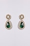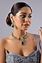 Featuring a two-tone finish necklace studded with kundan polki and green stones, set in mixed metal. It is paired with a matching pair of earrings. Perfect for grand occasions like weddings and traditional festivities.