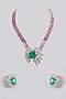 Featuring a white finish necklace studded with pink and white diamonds, including emerald stones, set in mixed metal. It is paired with a matching pair of earrings. Perfect for wedding celebrations, festive soirees or cultural gatherings adding a regal charm to every look.