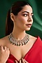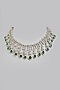 Featuring a white finish necklace studded with zircons and emerald drops, set in mixed metal. Perfect for festive occasions, weddings or cultural events, this jewellery is a wardrobe must for those who love to shine effortlessly.