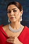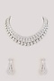 Featuring a white finish necklace studded with zircons, set in mixed metal. It is paired with a matching pair of earrings. Perfect for festive occasions, weddings or cultural events, this jewellery is a wardrobe must for those who love to shine effortlessly.
