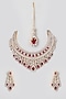 White Rhodium Finish American Diamond & Ruby Stone Necklace Set