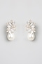 White Rhodium Finish Cubic Zirconia Floral Stud Earrings