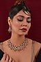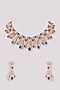 Featuring a white rhodium finish necklace studded with white and green zircons, set in mixed metal. It is paired with a matching pair of earrings. Perfect wear for festive occasions or wedding ceremonies.