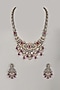 Featuring a two-tone finish handcrafted necklace studded with kundan polki and ruby synthetic stones, set in 92.5 sterling silver. It is paired with a matching pair of earrings. Perfect wear for festive occasions or wedding ceremony.