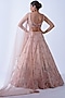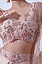 Featuring a peach lehenga in silk and tulle base with pearl hand embroidery and organza 3D floral detail. It is paired with a sleeveless blouse, a detachable belt and an embroidered dupatta. Accentuate it with statement jewellery and heels for wedding or sangeet ceremonies.