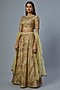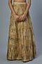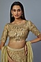Featuring a lime green lehenga in chinya silk base with aari and french knot embroidery. It is paired with a matching blouse and a net dupatta having aari and beads work.