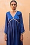 Featuring a cobalt blue kurta in pure cotton silk base with flared sleeves and lace embellishments. It is paired with matching cotton silk pants.