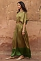 Featuring a features a multi-colored maxi dress in crepe base with hand block print. It is paired with belt having mirror and resham embroidery. Accentuate it with heels and a clutch bag for a sangeet or cocktail ceremony.