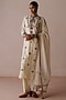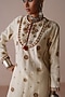 Featuring an ivory straight kurta crafted from chanderi fabric, adorned with thread and dabka hand embroidery. It is paired with matching chanderi pants and a dupatta. This ensemble is perfect for festive gatherings or wedding celebrations. Style it with heels and statement jewellery to add some glamour to your look.