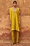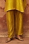 Featuring a yellow kaftan kurta in mulberry silk base with dori and metal sequins embroidery. It is paired with silk pants. Accentuate it with silver jewellery, heels and a clutch for festive occasions or mehendi ceremonies.