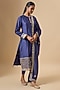 Featuring a navy blue kurta in chanderi base. It is paired with pants and a dupatta. Accentuate it with statement earrings and heels for a festive occasion, cultural event or pooja ceremony.
