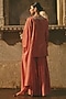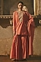 Featuring a pink short kurta in chanderi base, adorned with heavy gota and dori work. It is paired with a chanderi sharara and a dupatta. Style it with statement earrings, a cuff, and juttis for a festive occasion, a cultural event or a pooja ceremony.