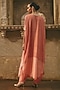 Featuring a pink kaftan in silk base, adorned with print, dori work, and embroidered motifs. It is paired with matching cotton lycra pants. Style it with statement earrings, a cuff, and heels for a festive occasion, a cultural event or a pooja ceremony.