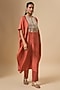 Featuring a red kurta in mulberry silk base. It is paired with pants. Accentuate it with statement earrings and heels for a festive occasion, cultural event or pooja ceremony.
