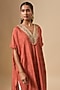Featuring a red kurta in mulberry silk base. It is paired with pants. Accentuate it with statement earrings and heels for a festive occasion, cultural event or pooja ceremony.